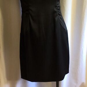 Cute little dress with a lace top with a nude color lining, zipper back, cap sleeves, waist gathers to hips for a flattering fit. In good preowned condition. Measurements are as follows: bust 34”, waist 29”, hips 34”, dress length 36”.