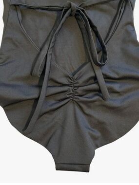Flattering one-piece with ruffle shoulder detail for feminine style. Scoop neckline and adjustable waist tie for a custom fit. Smooth matte black fabric that provides comfortable coverage. Easy-to-wear design that transitions from pool to beach.