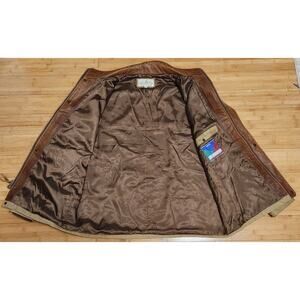 LONE PINE Leather Romeo Jacket Men 46 Brown Beige Wool Lined Outdoor Made In USA