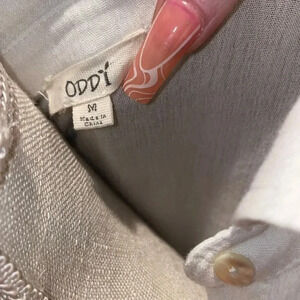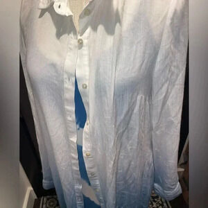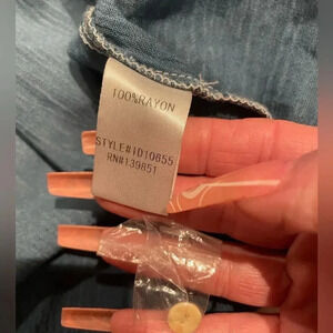 LONG BREAK AWAY BUTTON DOWN TOP WITH POCKETS BLUE DENIM/WHITE RAYON SIZE MEDIUM