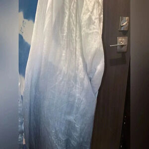 LONG BREAK AWAY BUTTON UP TOP WITH POCKETS BLUE DENIM/WHITE RAYON SIZE MEDIUM