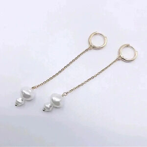 LONG Dangle Earrings with Pearl | Gold plated | Pearl Earrings