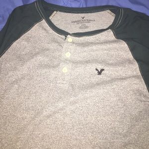 Green and gray tshirt (long sleeve) from AEO! It's super comfy and great with any outfit! Brand new like state!