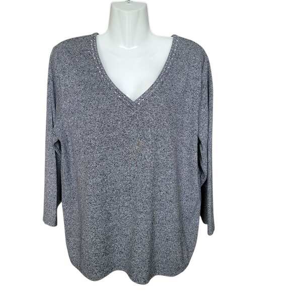 Grey long sleeve sweater by Rafaella. Silver studded V-neck. Size XL. Excellent condition. No rips, holes or stains. B65-B2
