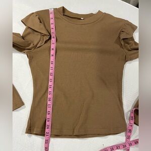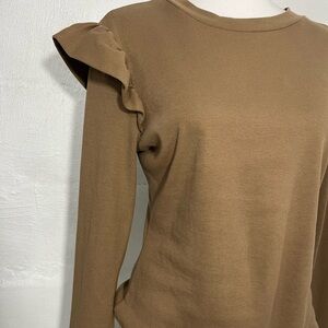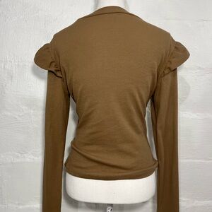 LONG SLEEVE RIBBED RUFFLE DETAIL TOP