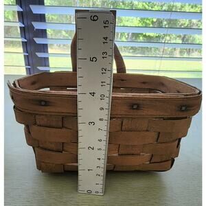Vintage, dated 1985, Longaberger key or mail hanging basket. It has a leather handle on the backside along with a picture hanging hook attached for hanging on the wall. On the left top side there are two split pieces. See pictures. Otherwise this is a nice vintage basket. It is priced accordingly.