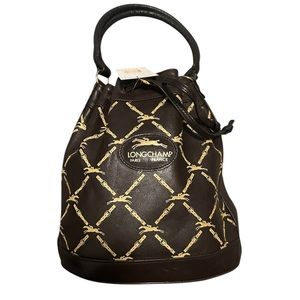 LONGCHAMP BROWN AND TAN LEATHER DRAWSTRING BUCKET SHOULDER BAG