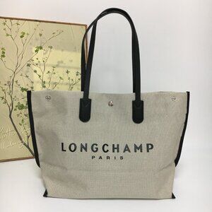 This special bag is crafted from premium cotton canvas. The LONGCHAMP bag features decorative embellishments on the front and a black and white back.