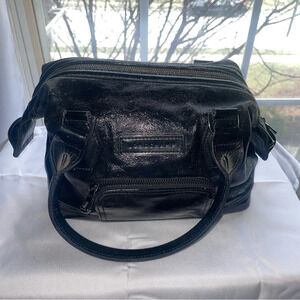 LONGCHAMP Doctor's Bag Boston Bag Patent Leather Black Red Lining 0711861