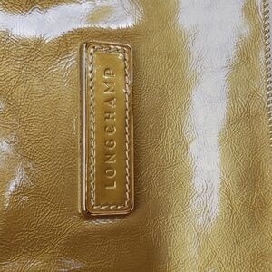 LONGCHAMP TRAVEL weekender gold/yellow patent leather satchel gold hardware.