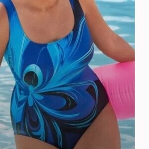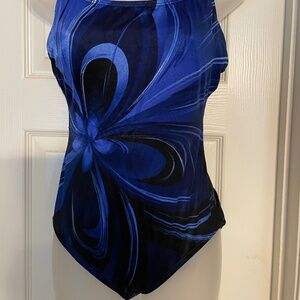 LONGITUDE VINTAGE tummy control blue floral swirl swimsuit ,size 10