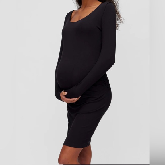 This closet staple is a maternity wardrobe must-have that can be worn for every trimester and then some! Perfect for layering, this long sleeve scoop neck dress has just the right amount of length and stretch to grow with you and side-ruching for a bump-hugging silhouette that is universally flattering!