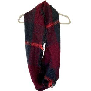 LOOK Buffalo Plaid Infinity Scarf One Size Red Neon Orange Plaid Acrylic