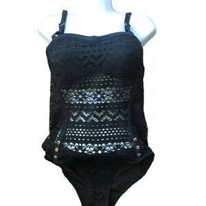 LOOK-BOOK STORE Crochet Lace Halter One Piece Swimsuit Sz. 6 Black Stunning Sexy