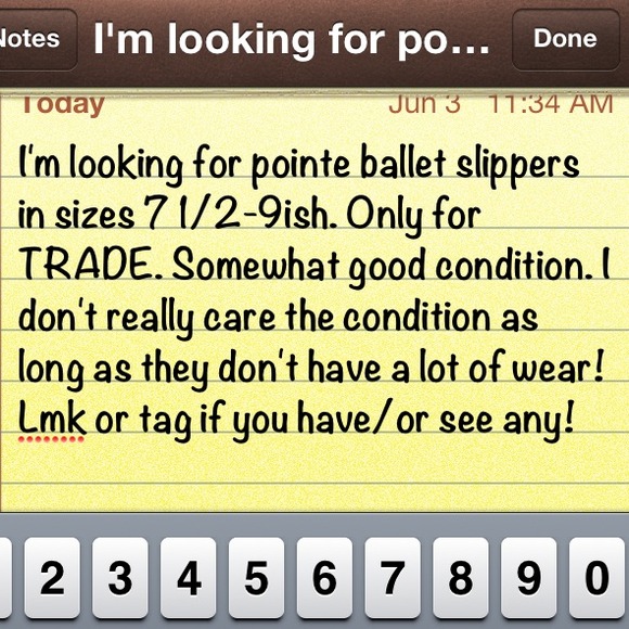 I have a pair but I didn't see anything in your closet to trade for. I have a pair of gaynor minden pointe shoes in great condition. Let me know if you would be interested in