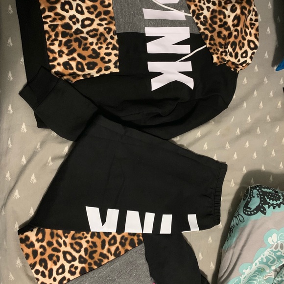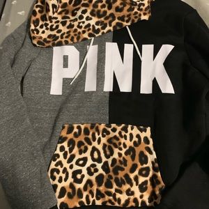 VS PINK leopard set Med campus sweats
