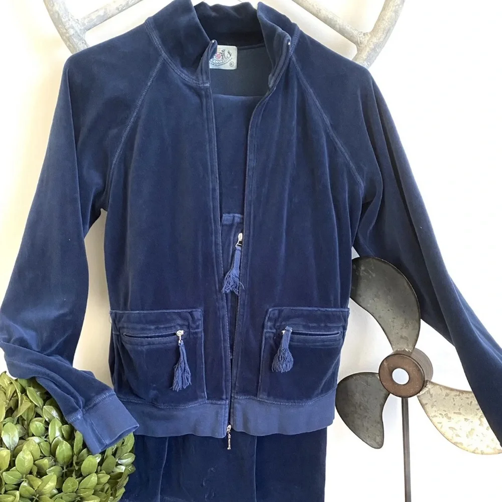 This exact velour juicy couture zip up with the zipper pockets to match my blue juicy cargo pants pictured in the 3rd and 4th photo. If you have this jacket in a small or medium please comment!