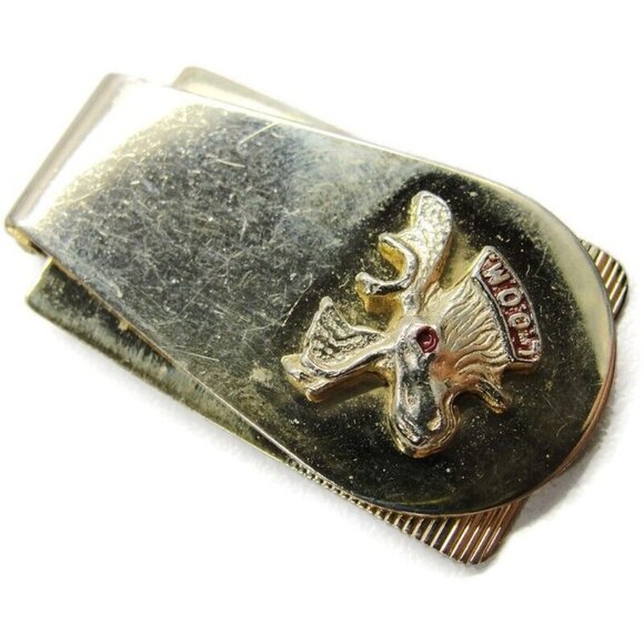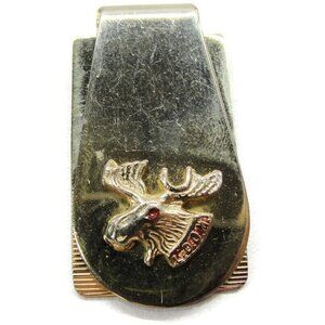 L.O.O.M. Moose Flip Up Gold Tone Money Clip Stainless Steel Wallet CC Cash