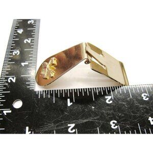 This unbranded L.O.O.M. Moose Flip Up Gold Tone Money Clip is a sleek and practical accessory. Crafted from durable stainless steel, its gold tone adds a touch of elegance while securely holding your cash and cards.