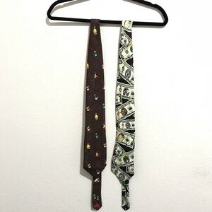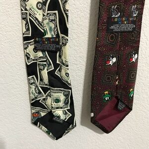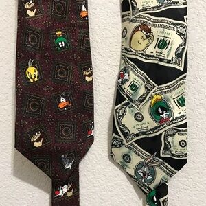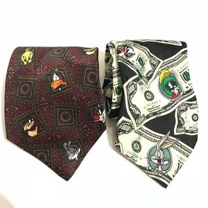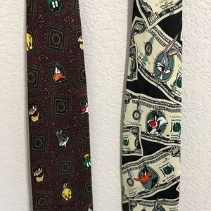 LOONEY TUNES Bunny Taz Tweety Dollar tie 4” and black tie bundle Vintage