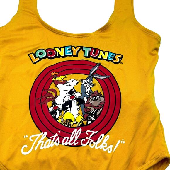 LOONEY TUNES | Women's Medium Vintage That's All Folks Graphic 1 Piece Swimsuit