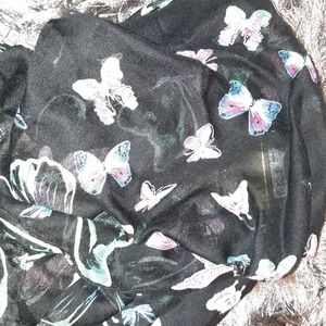 BLACK BACKGROUND WITH COLORFUL BUTTERFLIES IN RED PINK, GREEN, BLUE, & WHITE