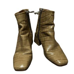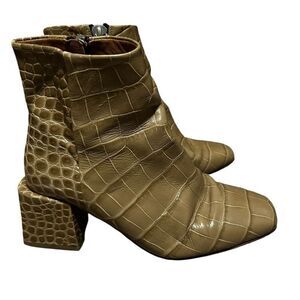 LOQ Matea Embossed Leather Crocodile Tan bootie Size EU 35 US 5 Block Heel