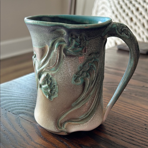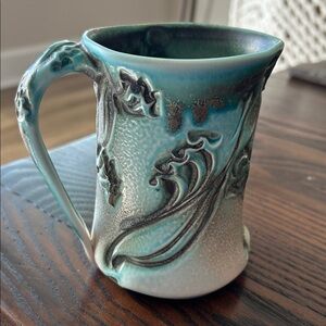NEVER USED EXCEPT FOR MUG COLLECTION DISPLAY! Gorgeous porcelain mug that holds at least 16oz and feels super smooth to touch and hold while you sip! Fired in a soda kiln.