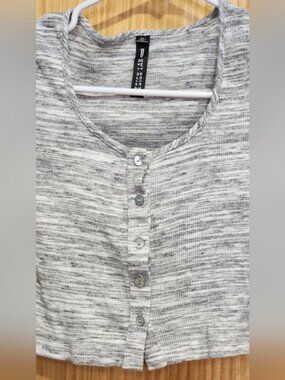 LORD & TAYLOR- Design Lab:Gray Button-Up Ribbed Top