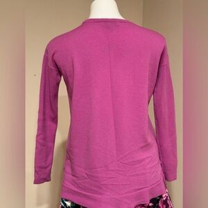 Lord & Taylor fine merino, pink sweater. Measurements approximately: Length is 22 inches. Armpit to armpit is 19 inches. Sleeves are 18 inches. Excellent condition! Ships in 1-2 business days from a healthy, smoke free home.