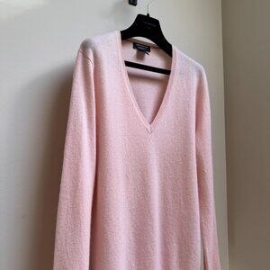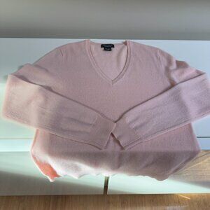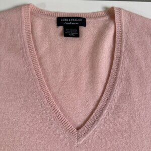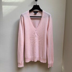 LORD & TAYLOR Essential 100% Cashmere V-Neck Sweater - Baby Pink (XL)