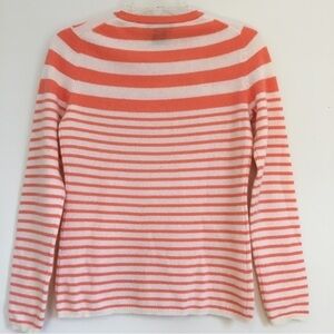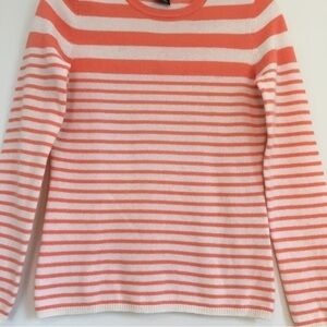 LORD & Taylor Cashmere Salmon Pink & White Striped Crew Neck Sweater