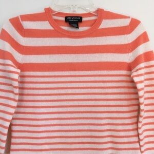 LORD & Taylor 100% Cashmere Salmon Pink & White Striped Pull Over Crew Neck Sweater