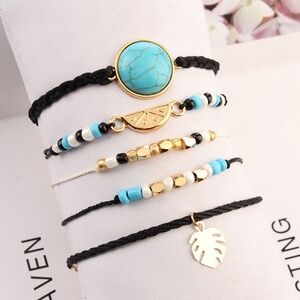 **LORDES* 5-Pc Black x Teal Fashion Bracelet Set