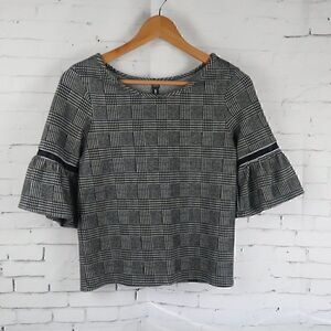 BLACK & WHITE ROUND NECK TULIP SLEEVE CROPPED TOP SIZE SMALL BY LORD & TAYLOR DESIGN LAB PRE OWNED LIKE NEW CONDITION