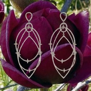 Pearl Jam's Eddie Vedder's Wife Wearing these LOREE RODKIN 18K White Gold Spherical Star Drop Diamond Earrings Completely SOLD OUT which have 3 different spherical shapes. Cardi B wore the size XLG (which has an additional circle- totaling 4) to the 2019 Billboard Music Awards. Michelle Obama wore the same earrings to the Inaugural Ball. These earrings twinkle with sparkles under the light. Both earrings are stamped with 750 and both earrings have Loree Rodkin's signed hallmark. These earrings have the omega clasp on them. These earrings sold out everywhere quickly and are impossible to obtain. The pave diamonds are near colorless. These are brand new and have never been worn. Absolutely drop dead gorgeous. Don't miss your opportunity to own these beauties!