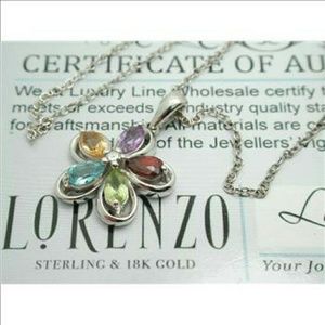 LORENZO 925 Sterling Silver & 18k White Gold Genuine Multicolor Stones Necklace