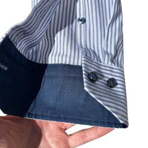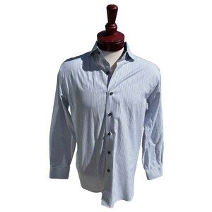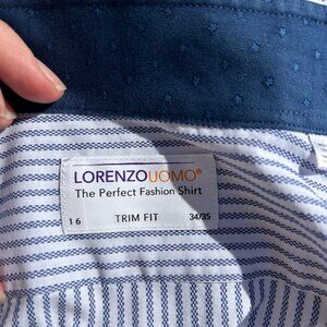 LORENZO UOMO Men's Trim Fit Button Up Shirt Blue White Stripe - 16 (34-35)