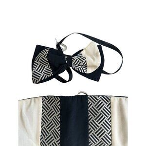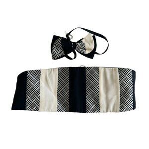 Elevate your formal look with this vintage black and cream bowtie and cummerbund set. Perfect for weddings, proms, or any special occasion, this set adds a classic touch to your attire.