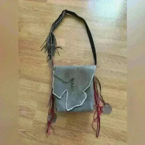 Loriano Tolaini is an Italian leather artisan who now resides in Utah. He cuts and sews each of his bags individually with quality leather and his own crafting techniques developed over decades. Each bag is truly a piece of wearable art. This crossbody messenger bag is done in russet leather and has a strong boho vibe. It has an adjustable strap, a rear exterior pocket and a front flap/snap closure. Directly under the front flap is a zip pocket and there is another zip wall pocket on the inside. Brand new; never used, however there is no tag.