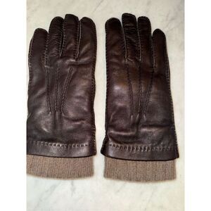 LORO PIANA Cashmere-Lined Leather Gloves in Dark Brown