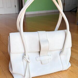 LORO PIANA Chic White Leather Shoulder Bag Medium Size Made In Italy Great Cond
