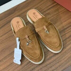 LORO PIANA Women's Fashion Loafers Half Slippers Brown