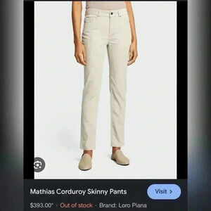 LORO PIANA Mathias Side Zip Corduroy Skinny Cream Pants Size 10 $995