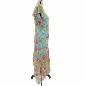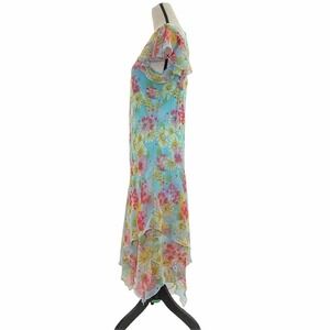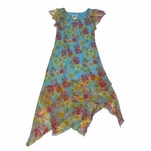 Los Angeles Gal Blue Floral Asymmetrical Short Flutter Sleeve Maxi Dress Women's Size 12