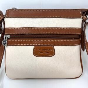 LOS ROBLES Polo Time Leather Crossbody Bag Purse Cream Brown Travel Classic