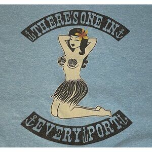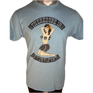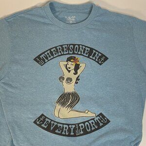 LOST Hawaiian Hula Girl Mens sz M Lt Blue Surf Skate T Shirt Lost Enterprises