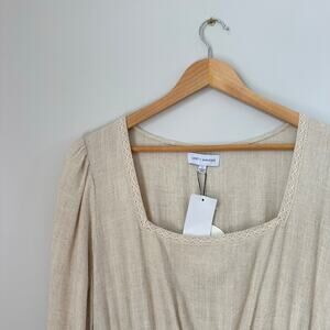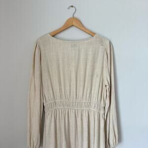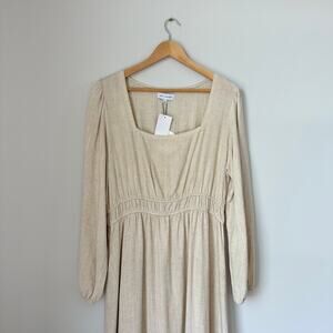 LOST + WANDER Easy Breezy Square Neck Long Sleeve Midi Dress in Oatmeal NWT