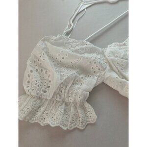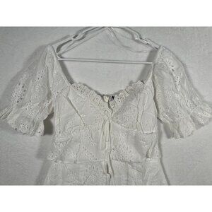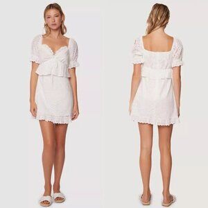 LOST + WANDER Eyelet Lace Mini Dress Summer White Size Small Ruffle Peplum NEW