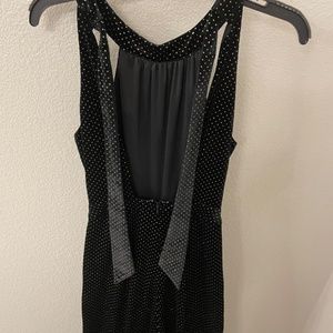 Worn once! Lost + Wander Lady Galaxy dotted black velvet jumpsuit! metallic gold thread dots on black velvet.